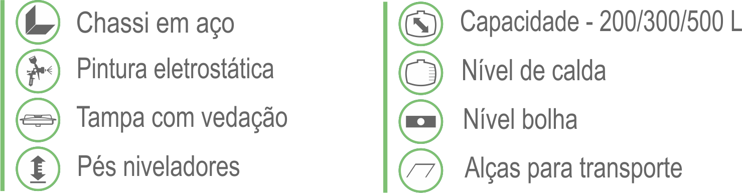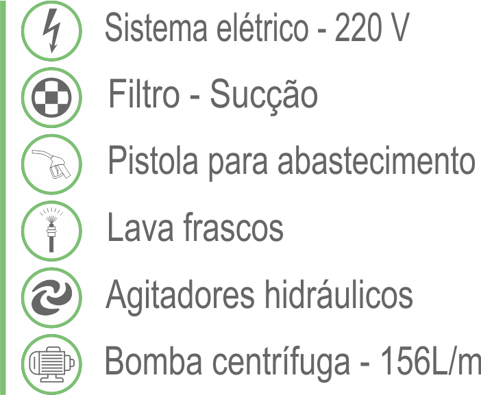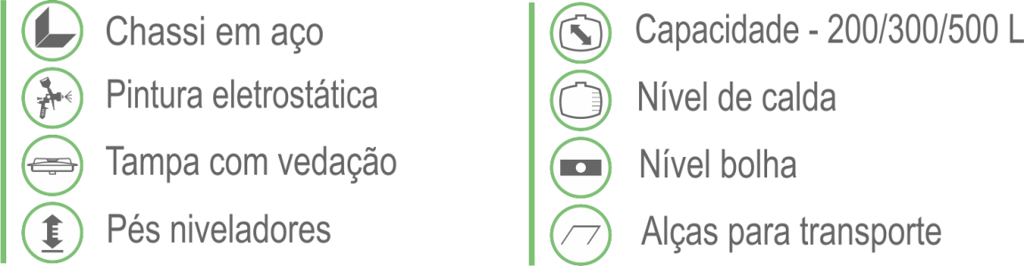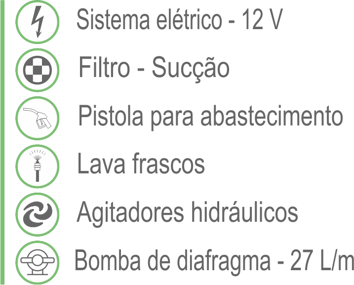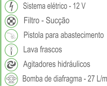 Os Misturadores de calda equipados com bombas de diafragma 12 v são indicados para preparo de caldas de baixa densidade e boa solubilidade.