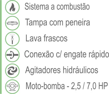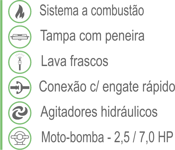 Os Misturadores de calda equipados com moto bomba a combustão são indicados para preparo de caldas de alta densidade e baixa solubilidade.