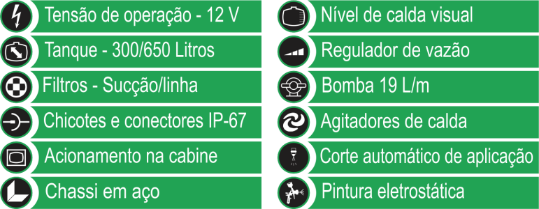 Disponibilizados tanto com bomba elétrica quanto com bomba hidráulica, com diferentes capacidades volumétricas de calda, atendendo a necessidade de cada produtor.